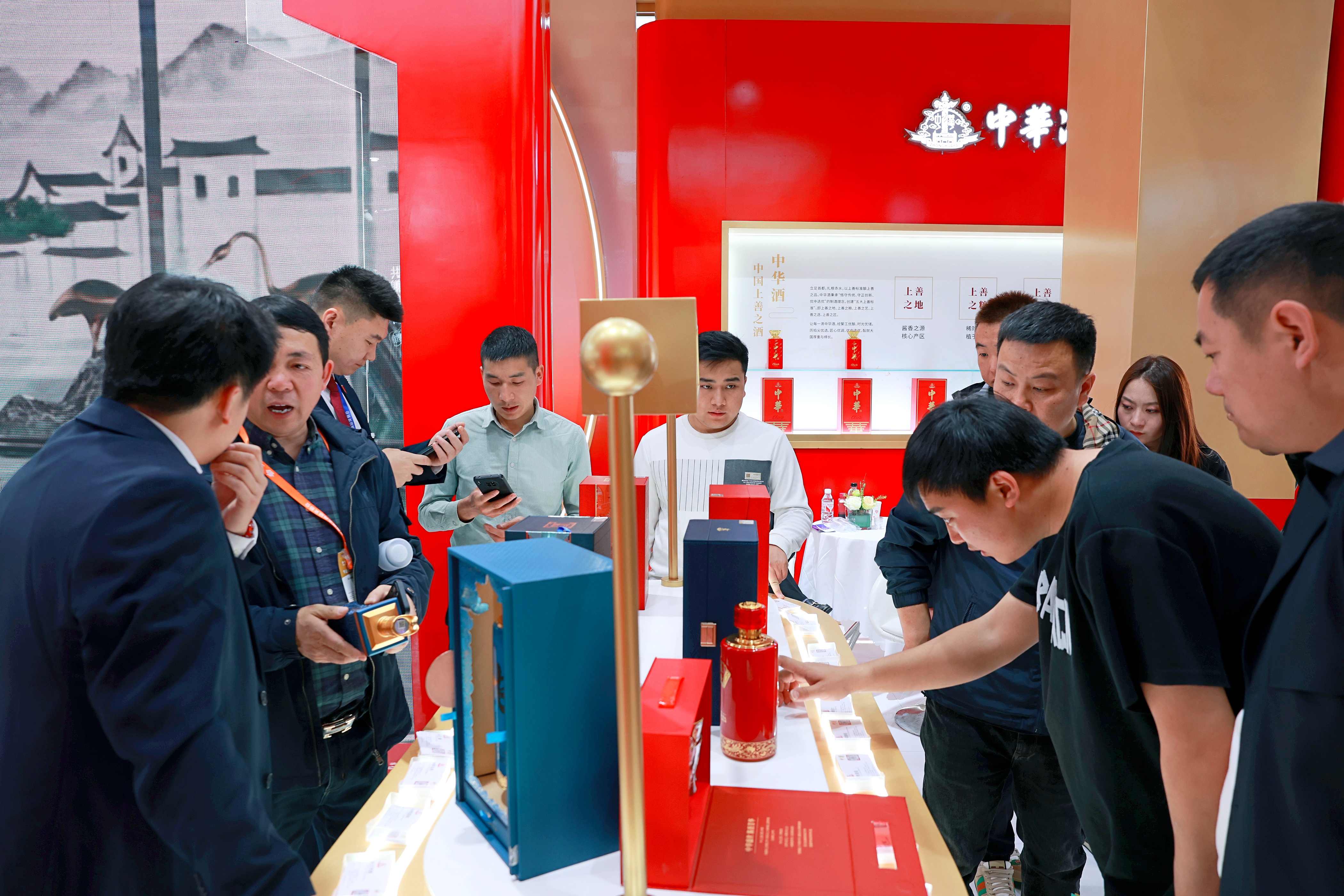 3月20日到3月24日酒店展期間,中華酒攜全系產品矩陣亮相人氣最旺的錦江賓館,3月25日與各頭部名酒一起,在世紀城國際會展中心(4號館)迎接全國酒商,其承載大國品牌歷史底蘊和文化品位的展廳設計大氣磅礴,與現場展示的主銷大單品中華酒、中華酒(品味),近期剛上市的文創產品中華酒(2025乙巳蛇年紀念酒)、中華酒(何尊壇)以及熱銷的中華·鳥巢酒等知名IP聯名款一同成為春糖上靚麗的風景線,吸引了大批酒商駐足品鑒洽談。