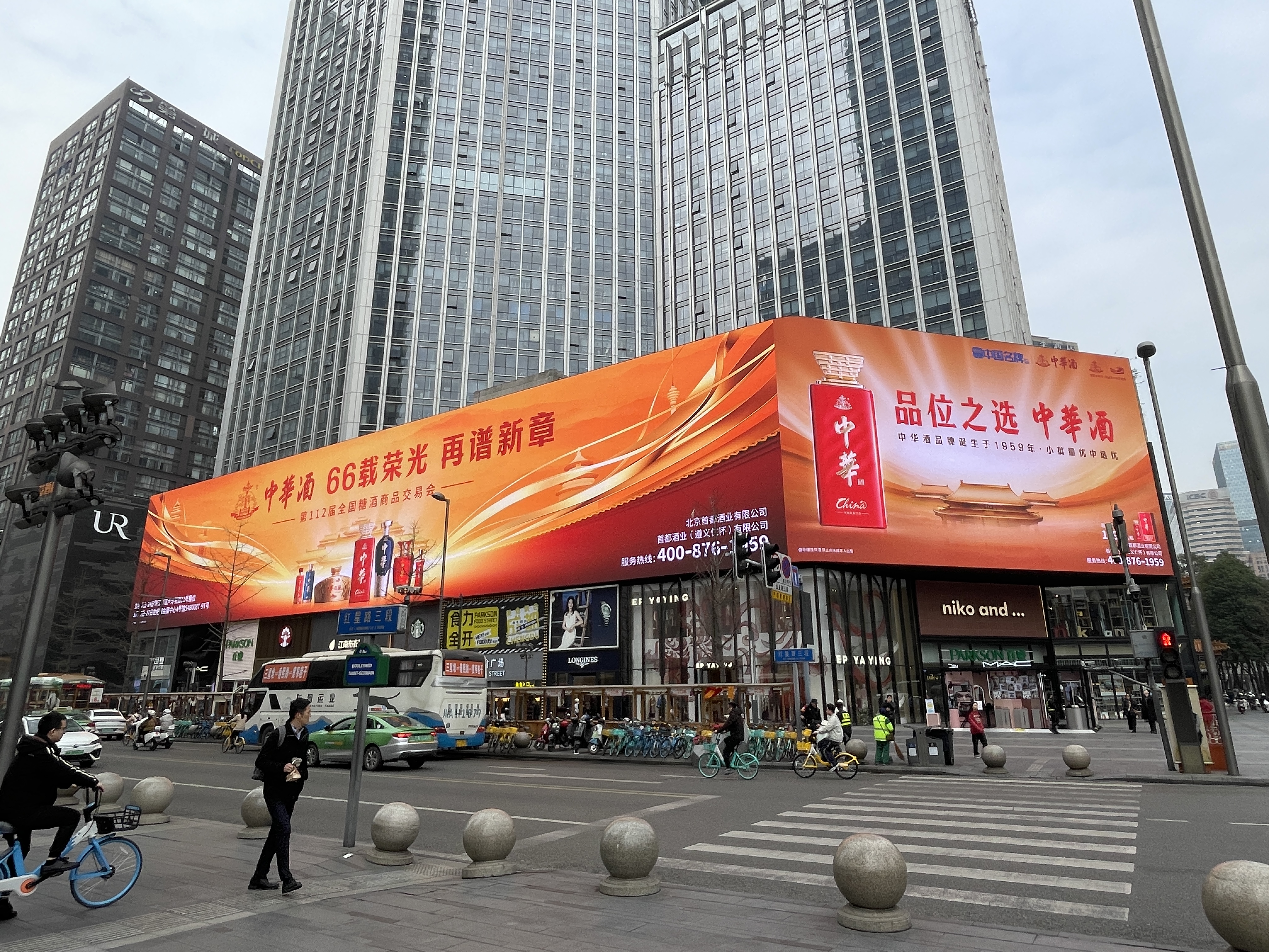 展館外,中華酒宣傳攻勢更是廣泛觸達全國各主要機場和戶外地標,糖酒會期間中華酒密集覆蓋成都雙流國際機場、天府國際機場12塊核心大屏,春熙路太古國金LED超級大屏,天府廣場、人民南路、天府新區和悅廣場、鹽市口西南影都等核心商圈,充分彰顯了中華酒強大的品牌信心與蓬勃的發展動能。