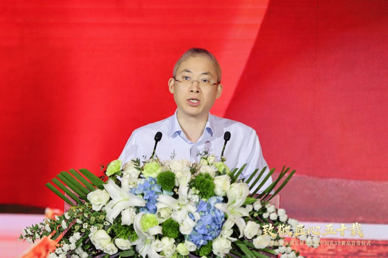 在全場矚目之下,本次活動的主角——中國禮50揭開了神秘的面紗,正式亮相春糖。王新國等領導嘉賓現場共同為中國禮50啟幕。