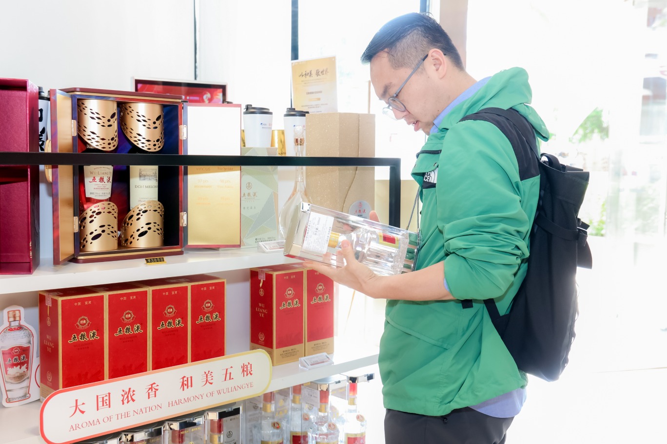 圖為消費者在五糧液品牌體驗專區