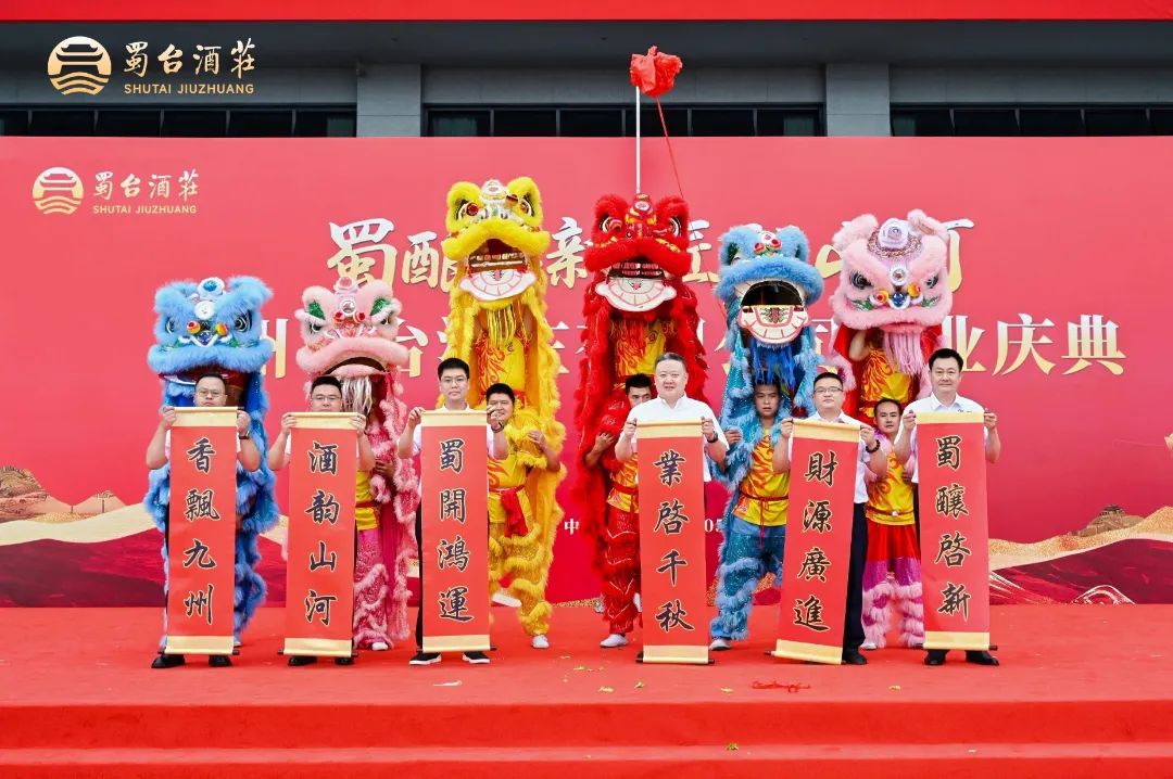 隨后,集團領(lǐng)導(dǎo)共同完成剪彩儀式,禮炮聲中,金色地爆球騰空而起,象征蜀臺酒莊正式啟航。傳統(tǒng)舞獅點睛與醒獅采青環(huán)節(jié),則寄托了對酒莊“納吉呈祥、釀得佳酩”的殷切期盼。