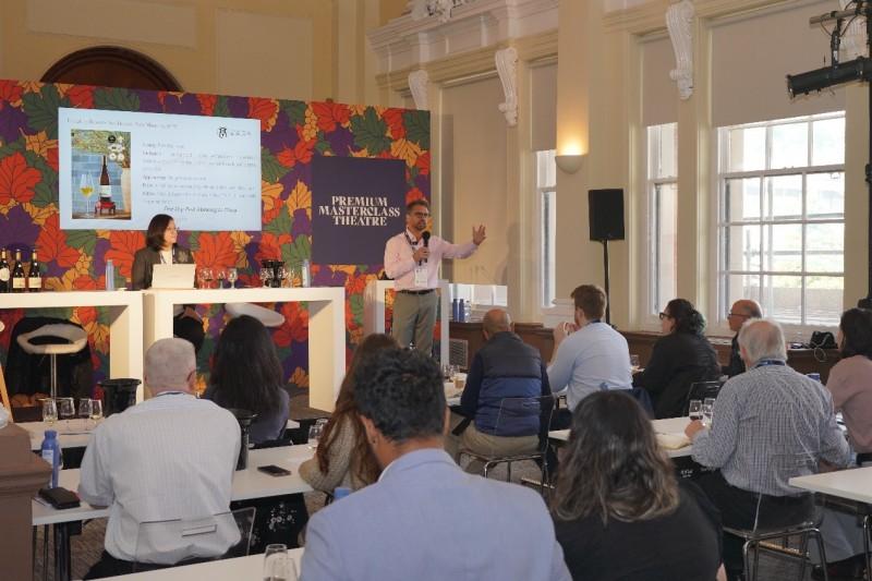 展會首日,龍亭酒莊莊主宋妍女士與英國著名葡萄酒大師Michael Palij MW聯袂呈現了一場名為"北緯37°的詩意海岸風土"的品鑒大師班。這場活動吸引了眾多國際買家和葡萄酒專業人士的關注。