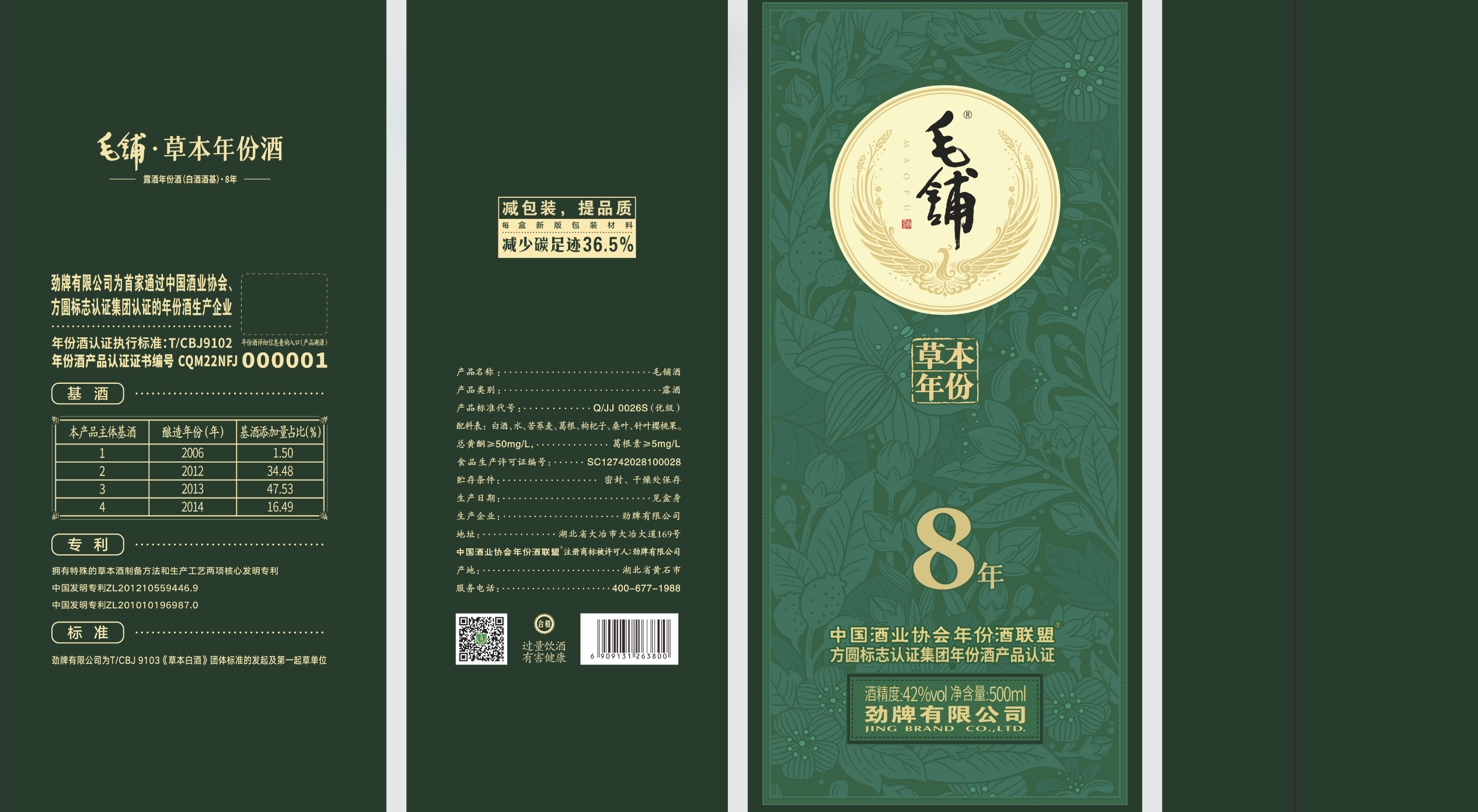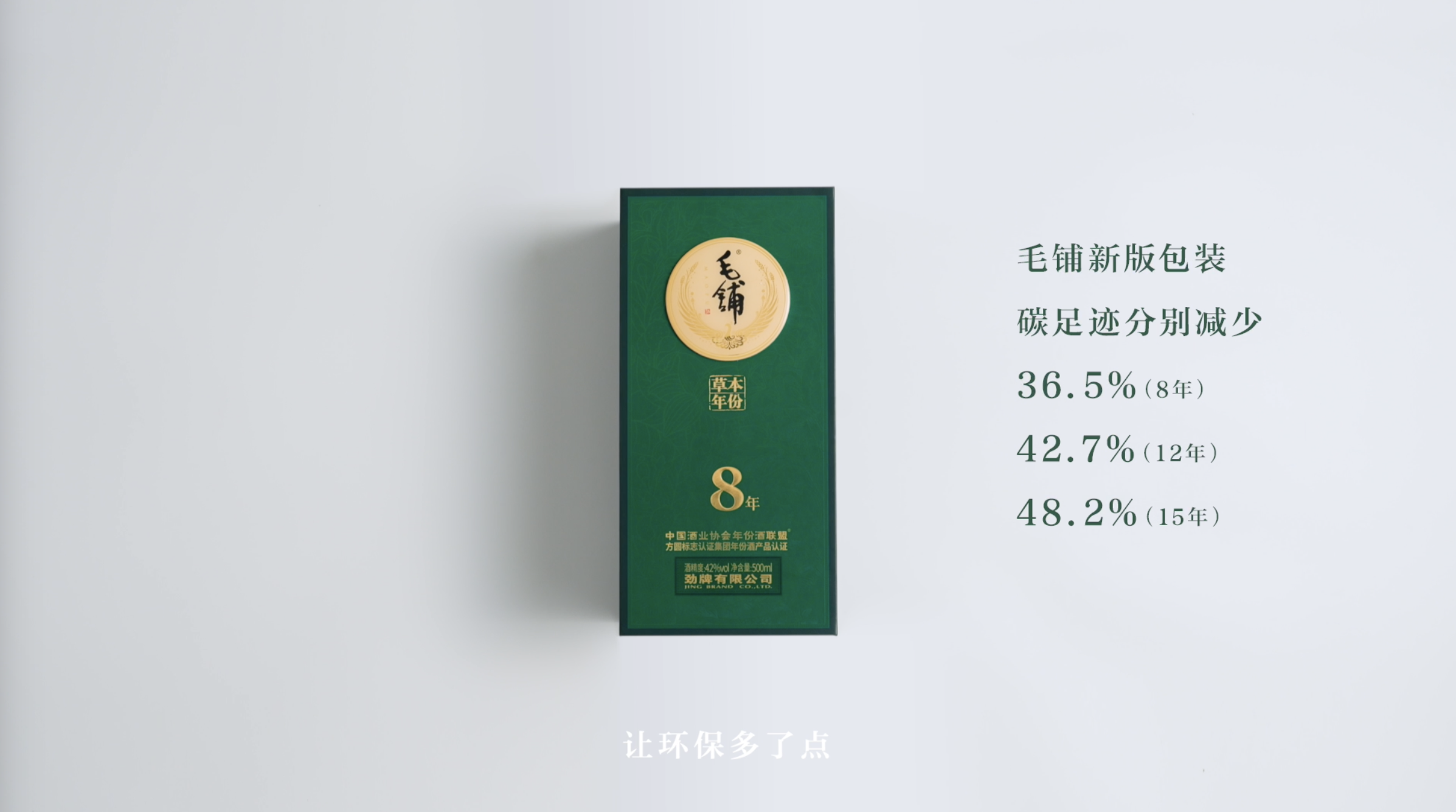 通過工藝的優(yōu)化與升級,毛鋪草本年份酒實(shí)現(xiàn)了不同年份產(chǎn)品碳足跡分別減少36.5%(8年)、42.7%(12年)、48.2%(15年),具像化呈現(xiàn)了毛鋪踐行環(huán)保理念與企業(yè)社會責(zé)任的擔(dān)當(dāng),讓用戶的每次消費(fèi)都成為可感知的環(huán)保貢獻(xiàn)。