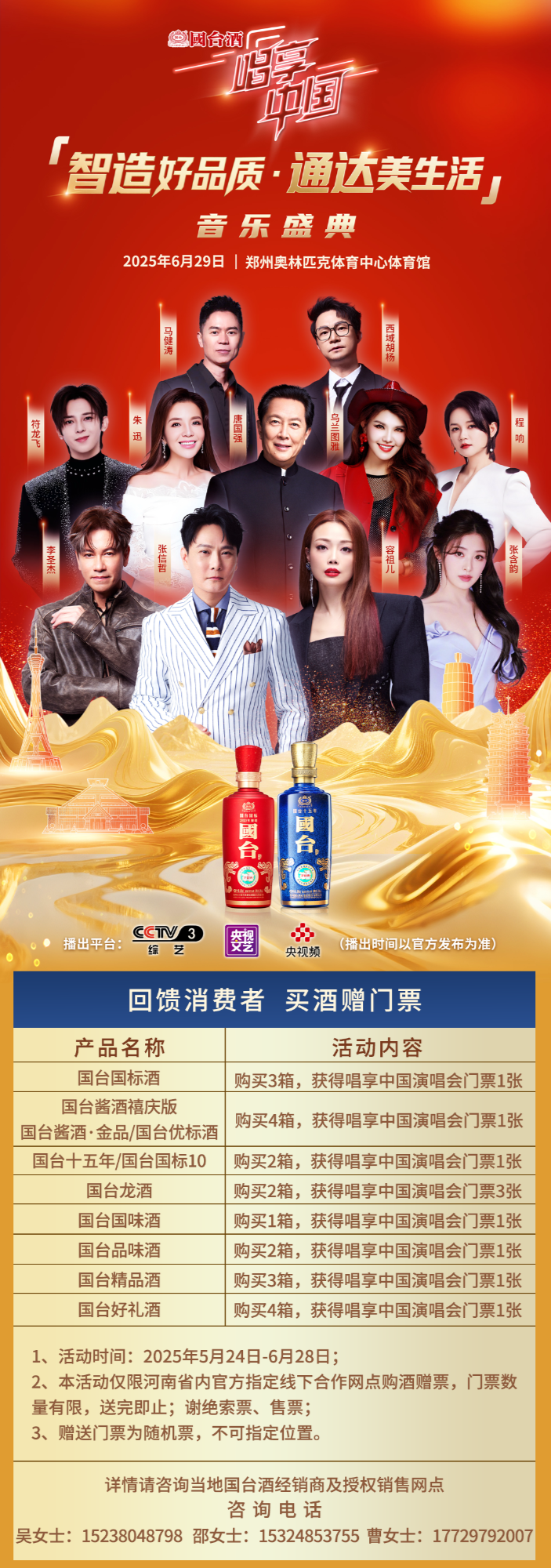 這場備受矚目的演唱會不僅是一次群星閃耀的音樂盛會,更是國臺酒深耕河南市場、回饋消費者的誠意之作,三大亮點搶先揭秘!