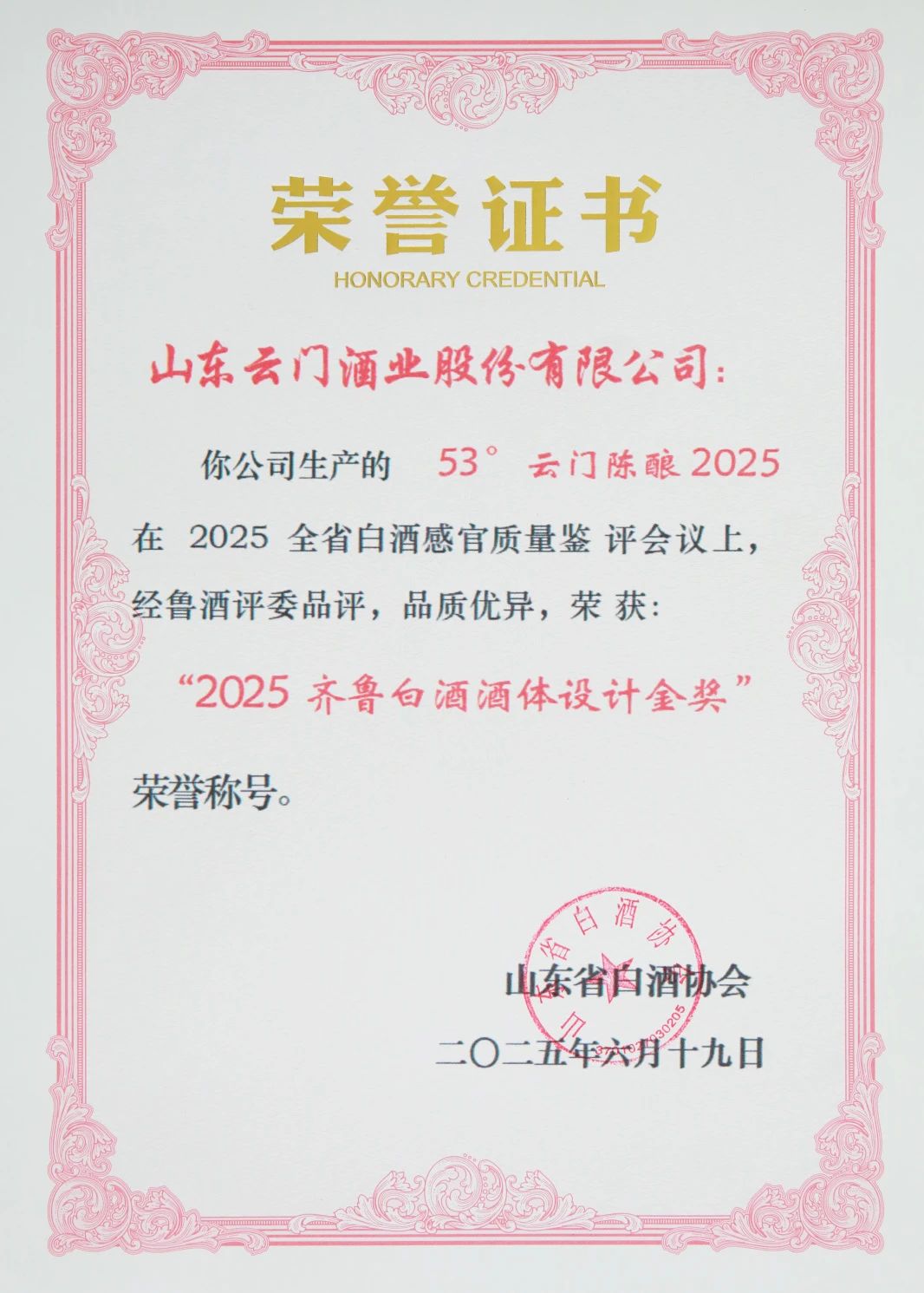 53°云門(mén)陳釀·玉白2025版榮獲2025齊魯白酒酒體設(shè)計(jì)金獎(jiǎng)!