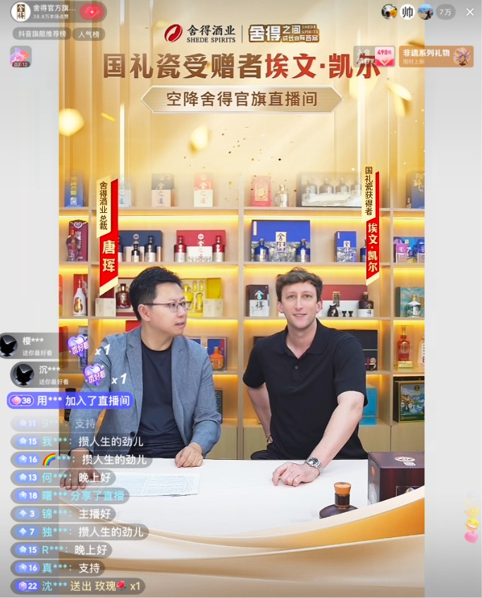 5月31日晚7點,舍得酒業以《舍得智慧人物》第七季熱播為契機,特邀節目嘉賓埃文·凱爾走進抖音「舍得官方旗艦店」直播間。舍得酒業總裁唐琿與埃文·凱爾圍繞白酒文化、端午習俗、生態釀酒以及舍得智慧等話題展開深度對話,為觀眾呈現了一場兼具文化深度與品質內涵的直播互動。