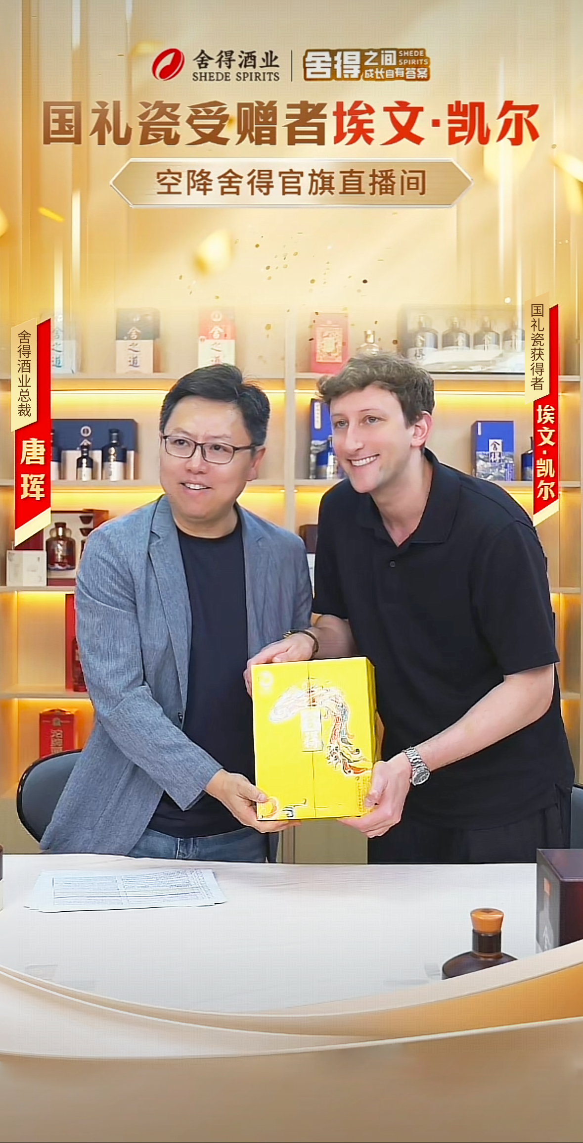 直播尾聲之際,埃文·凱爾還獲贈了象征著祥瑞與新生的特殊禮物——舍得蛇年生肖酒。今年是埃文·凱爾的本命年,舍得酒業以生肖酒傳遞了吉祥如意的美好祝福。通過此次與舍得酒業的深度合作,埃文·凱爾對中國文化也有了更深的體會和觸動,并表示要將中國的白酒文化與智慧分享給全世界。