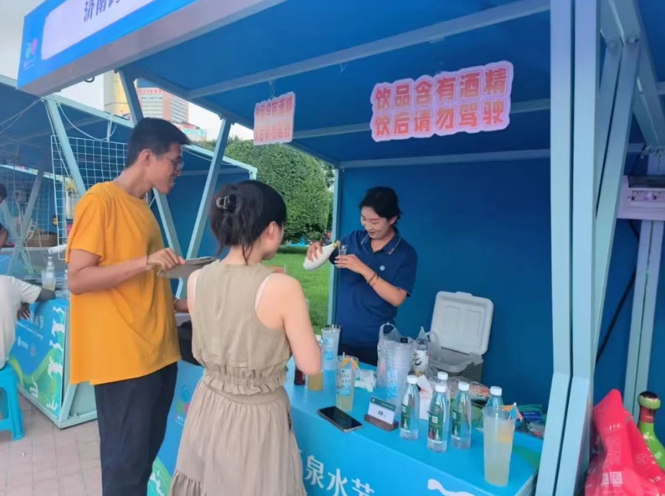 在泉水市集的核心位置,以趵突泉·泉香358為基酒調制的“泉香金菲士”成為全場焦點。泉香白酒與鮮果、氣泡水碰撞后煥發出的清冽回甘與輕盈口感,展現出傳統白酒與新時代飲用方式的完美融合。這一杯杯特調雞尾酒,恰似一條連通傳統與現代的味覺橋梁,巧妙化解了年輕群體對傳統白酒的刻板印象。當“白酒還能這樣喝!”的驚嘆在人群中傳遞,趵突泉酒業以創新姿態,悄然解鎖了品牌年輕化的味蕾密碼。