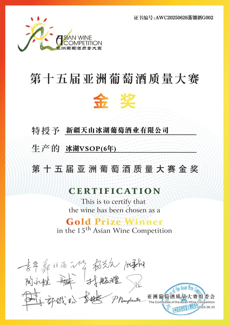 新疆冰湖白蘭地榮膺第十五屆亞洲葡萄酒質(zhì)量大賽金獎
