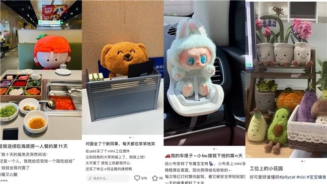 “電子養(yǎng)娃” 的流行,本質(zhì)是年輕人對(duì) “輕量陪伴” 的集體渴望。社交平臺(tái)上,有人為 Jellycat 拍下百?gòu)堈掌?記錄它 “陪” 自己加班、旅行、喝咖啡的瞬間;獨(dú)自吃火鍋的人會(huì)給海底撈陪吃娃娃擺好碗筷;不少年輕人把潮玩當(dāng)作 “工位搭子”。這些行為背后,是快節(jié)奏生活中對(duì) “低壓力情感連接” 的需求 —— 不需要刻意維護(hù),卻能在需要時(shí)提供精神慰藉。
