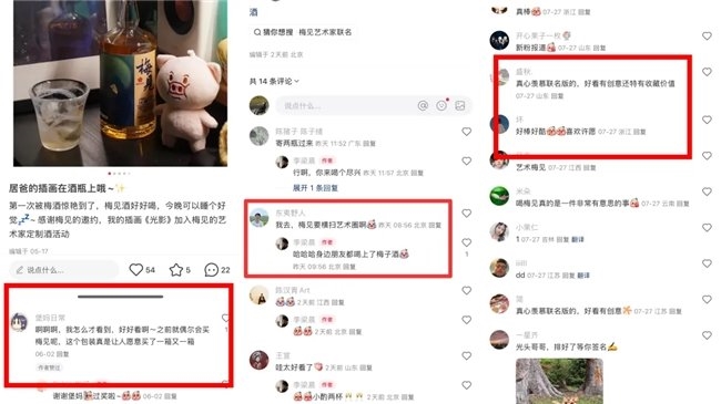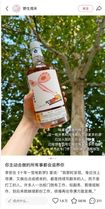 梅見(jiàn)還聯(lián)動(dòng) 1000 余位年輕藝術(shù)家共創(chuàng) “藝術(shù)酒矩陣”,從抽象線條到國(guó)風(fēng)插畫,多元風(fēng)格滿足不同審美偏好,甚至催生 “集郵式收藏” 熱潮。有人說(shuō):“哪怕不喝酒,也想把這些瓶身當(dāng)擺件。”