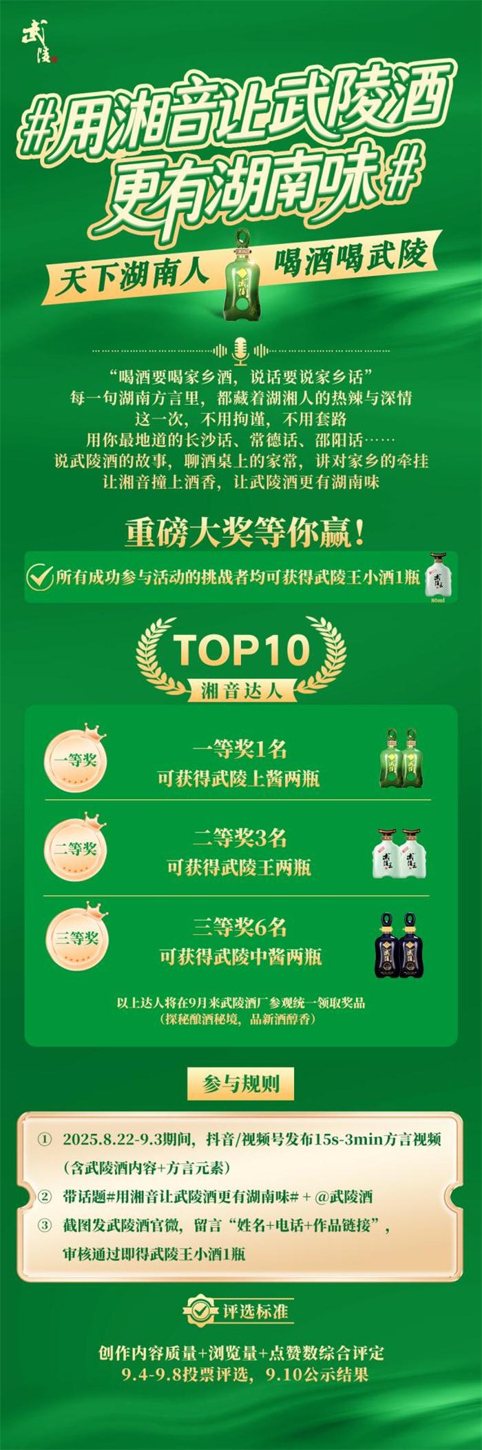 有獎征集丨用湘音讓武陵酒更有湖南味 參與活動贏武陵酒