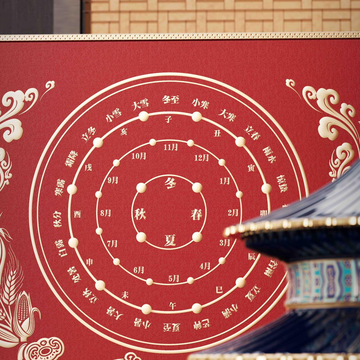一開一合間,見千年傳承,包裝采用天地蓋結構,輕輕開啟,象征著打開天壇的大門,寓意“天人合一”的哲學思想,體驗到一種別樣的尊貴與莊重。隨著天地蓋的開啟,展現出的是祈年殿柱網寓意圖與糧食、祥云、如意的圖形組合。祈年殿的柱網結構,象征著天地秩序的井然,體現了中國古人對宇宙規律的深刻認識和尊重,以簡馭繁的線條,暗藏二十八星宿的軌跡;行云流水的弧度,契合二十四節氣的輪回。