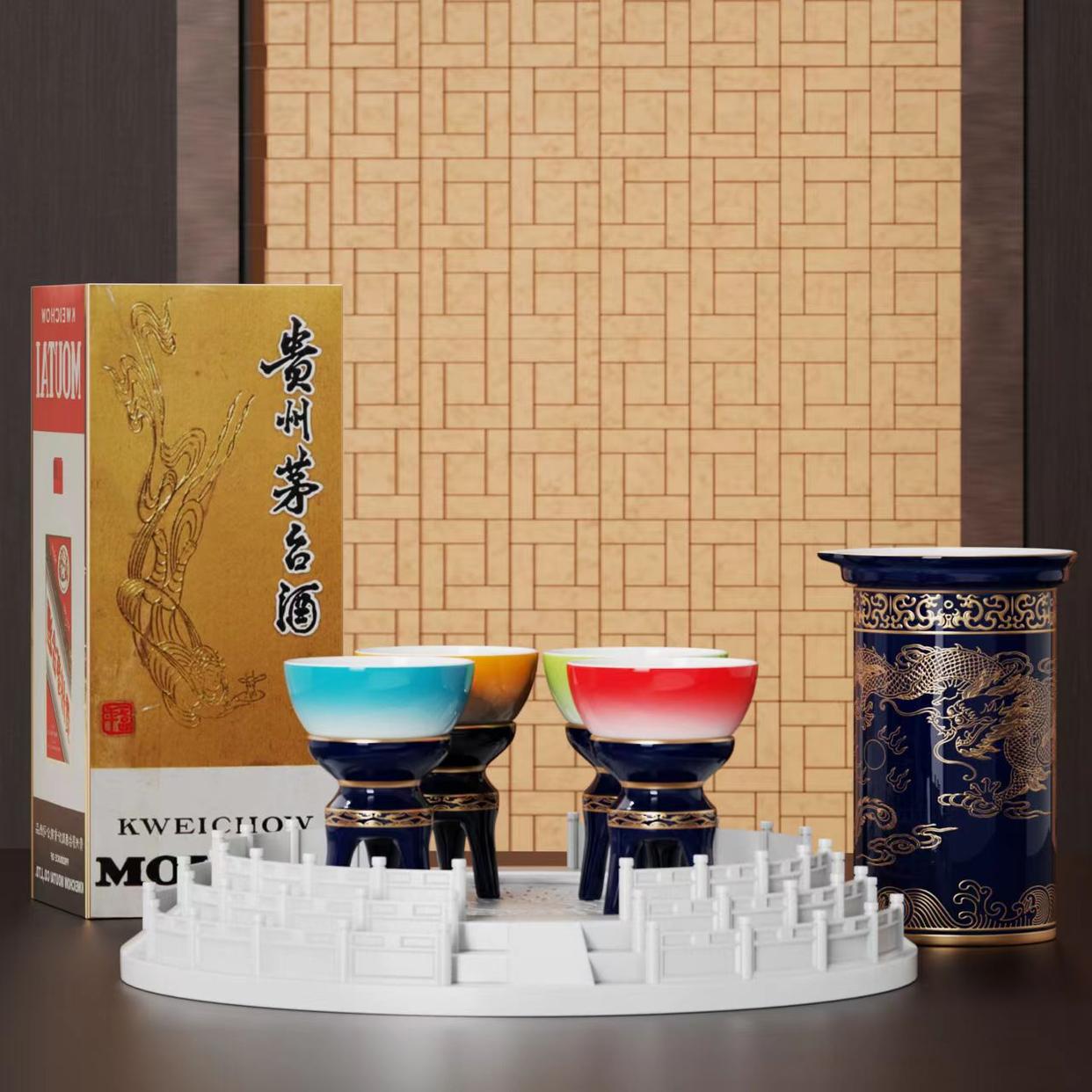 更值得一提的是四季納福杯,酒杯原型參考明代天壇大典中存放祭酒的匏爵造型,既保留傳統韻味,又賦予現代美感。四盞酒杯四種色彩,象征“春夏秋冬”,一杯敬春生、二杯敬夏長、三杯敬秋收、四杯敬冬藏,四杯斟滿,便是四季圓滿。一人獨飲時便是“一人觀四季”,感受時光的靜謐與美好;用其宴客時“四杯敬山河”,則是以豪情壯志映蒼穹,表達感恩與敬意。