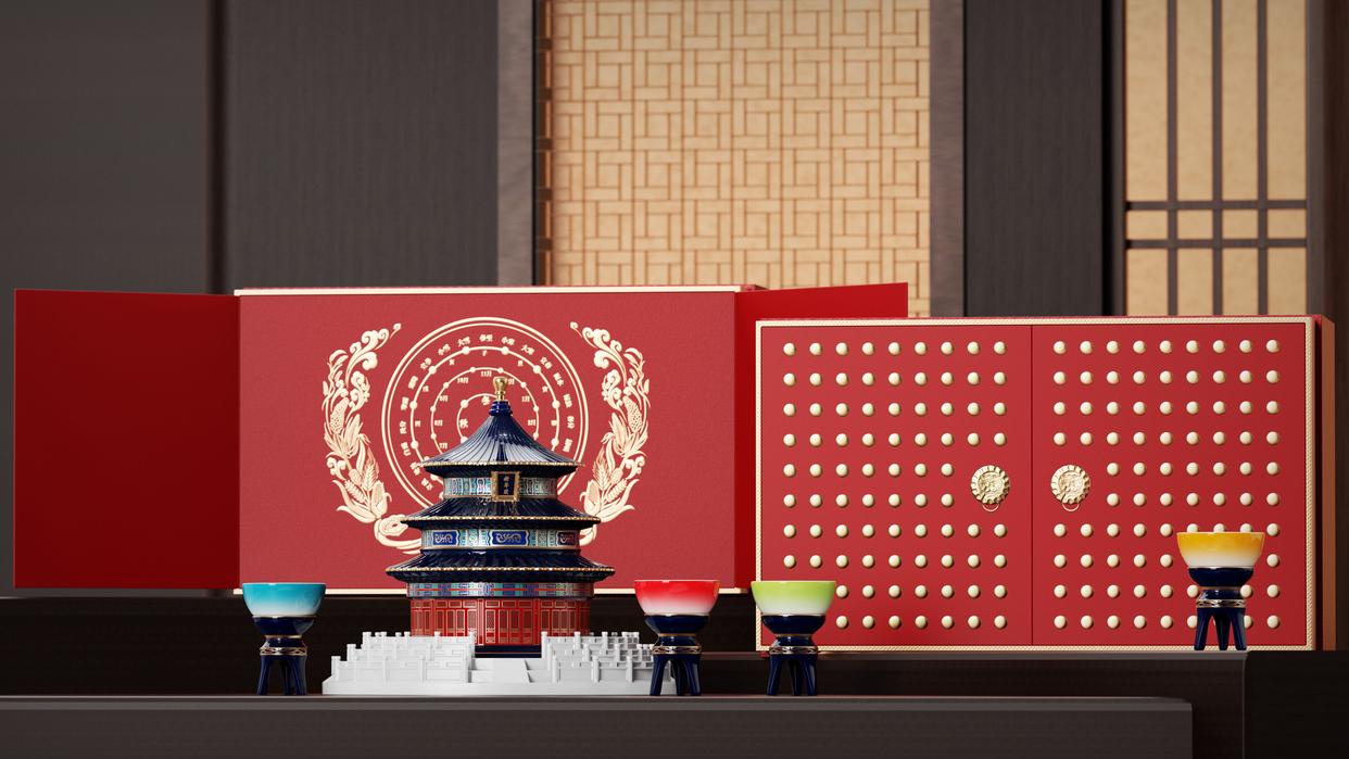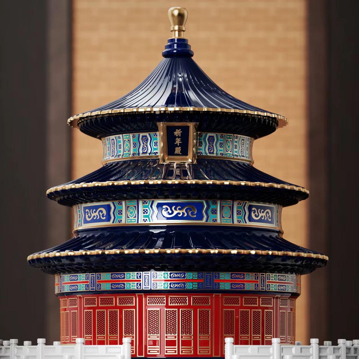 禮盒內這尊以天壇祈年殿為造型的陶瓷分酒器,無疑是一件震撼人心的藝術佳作。特邀中國工藝美術大師、非物質文化遺產傳承人賴德全先生作為技術指導,賦予此款分酒器獨特魅力。