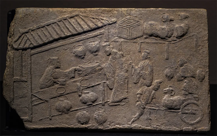 四川博物院展出的東漢羊尊酒肆畫像磚