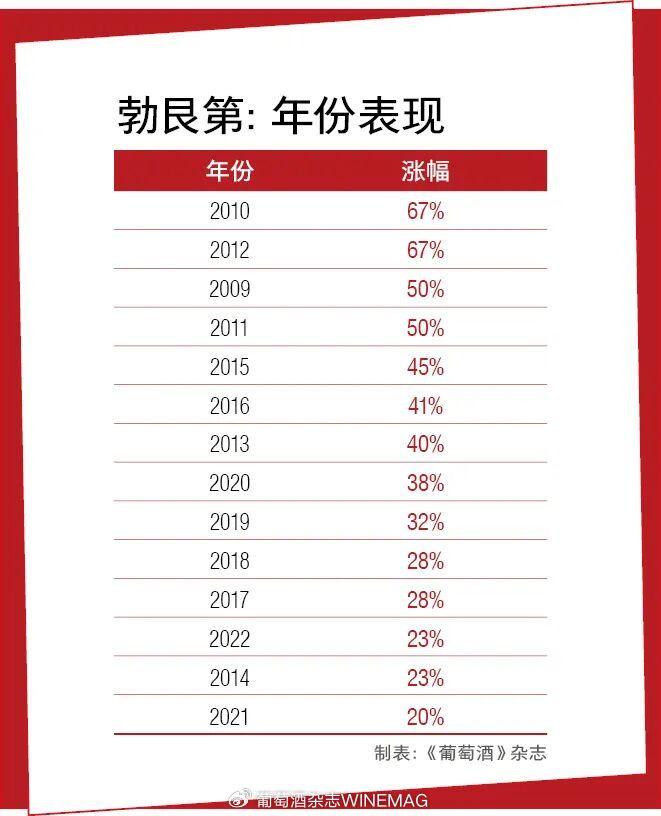 進一步分析其價格分化的關鍵因素,“年份”在勃艮第葡萄酒的市場表現中起到了決定性作用。不少精明的投資人會優先選擇年份優良的酒款進行布局,而今年的數據也印證了這一邏輯 —— 年份較長、品質出眾的勃艮第葡萄酒,價格上漲的概率顯著更高。