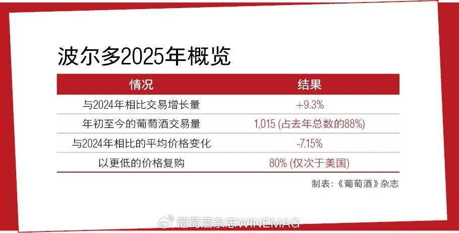總的來說,波爾多葡萄酒的價格下降,但交易量正在改善。如果交易量持續增長,或將為未來幾個月波爾多葡萄酒市場的穩定和更強勁的信心奠定基礎。