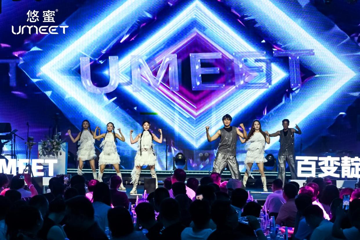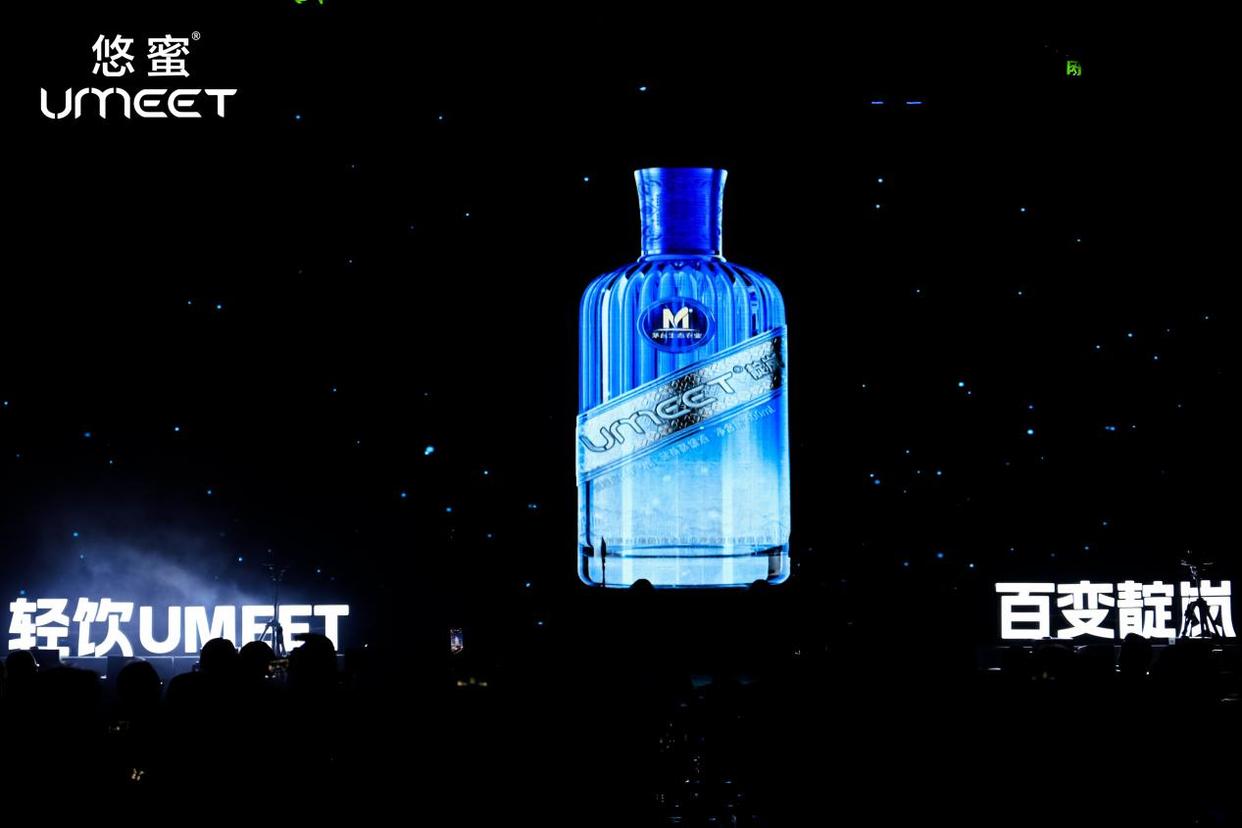 活動現場,張貴超正式宣布UMEET靛嵐藍莓蒸餾酒上市,隨著激光光束在大屏幕上雕刻出產品圖案,新品璀璨亮相,引發全場關注。