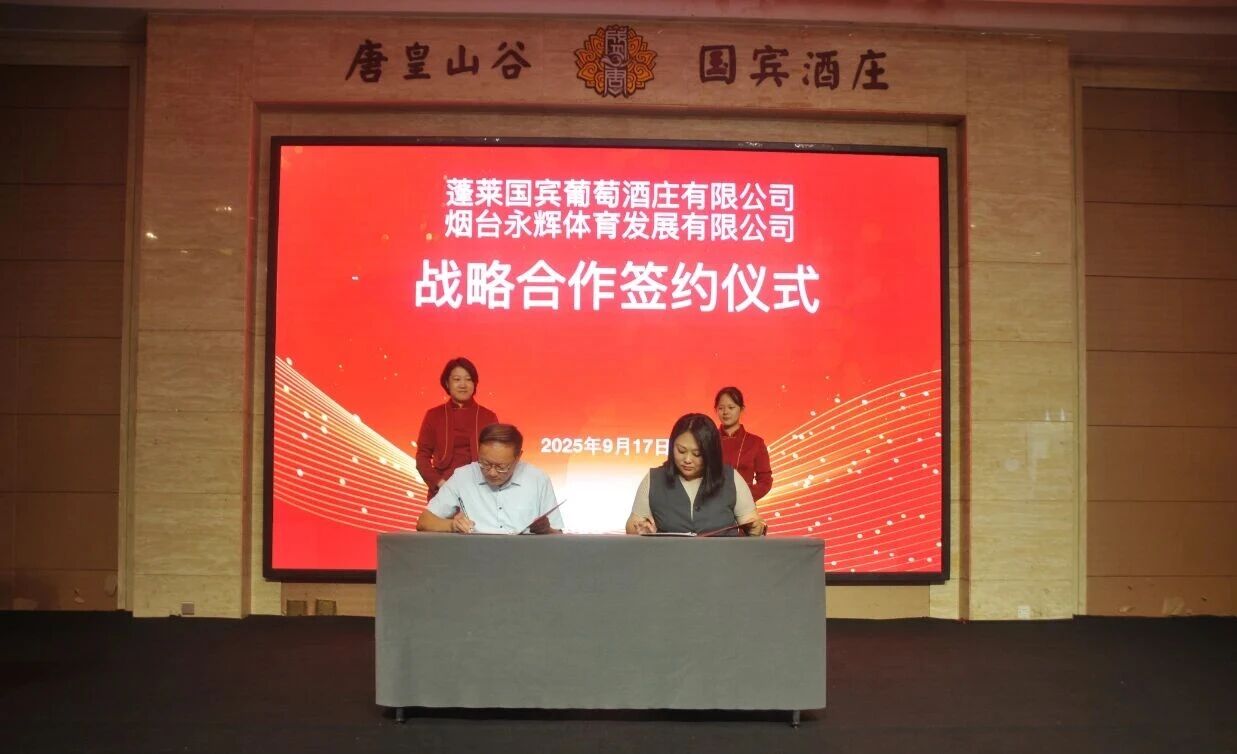 為了加強合作,進行優(yōu)勢互補,實現(xiàn)強強聯(lián)合,蓬萊國賓葡萄酒莊有限公司與煙臺永輝體育發(fā)展有限公司簽訂戰(zhàn)略合作協(xié)議。
