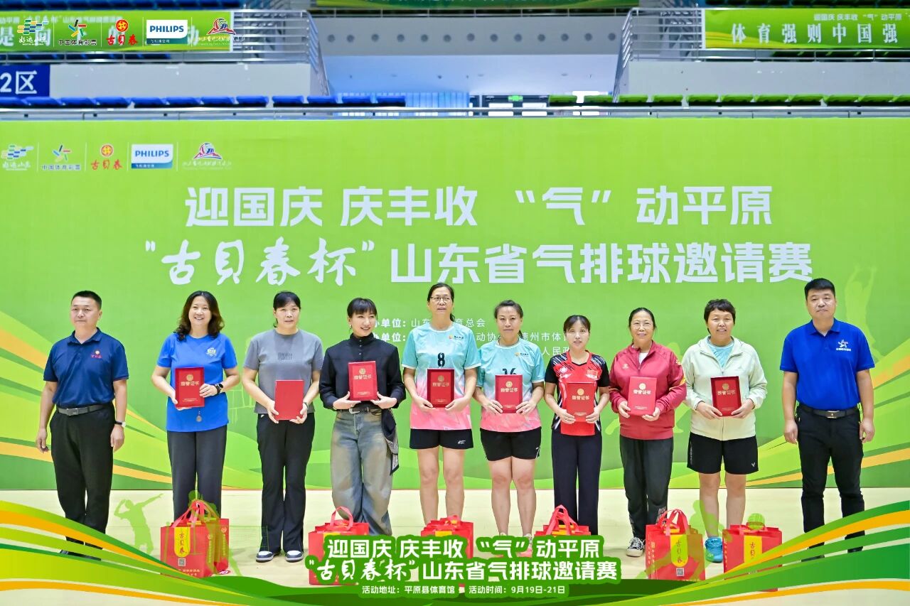 豐收節同期,迎國慶·慶豐收,“古貝春杯”山東省氣排球邀請賽在平原縣體育館圓滿收官。來自全省各地市的16支代表隊在兩天里奉獻40場精彩比賽,充分展現團隊協作與體育精神。頒獎典禮上,古貝春集團營銷公司總經理助理潘繼魁代表公司為獲勝隊伍頒發了榮譽證書和獎品,將活動氣氛推向高潮。