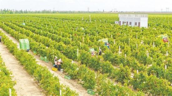 近日,位于永寧縣的寧夏億眾國際酒莊釀酒葡萄基地,工人在采摘葡萄。 《寧夏葡萄酒產業發展空間規劃(2025—2035年)》日前發布,進一步推動西夏區、賀蘭縣、永寧縣、青銅峽市、紅寺堡區5個基礎較好、配套成熟的子產區通過合理布局,促進產業高效發展,提升整體競爭力。 記者 李濤 馬賽爾 攝