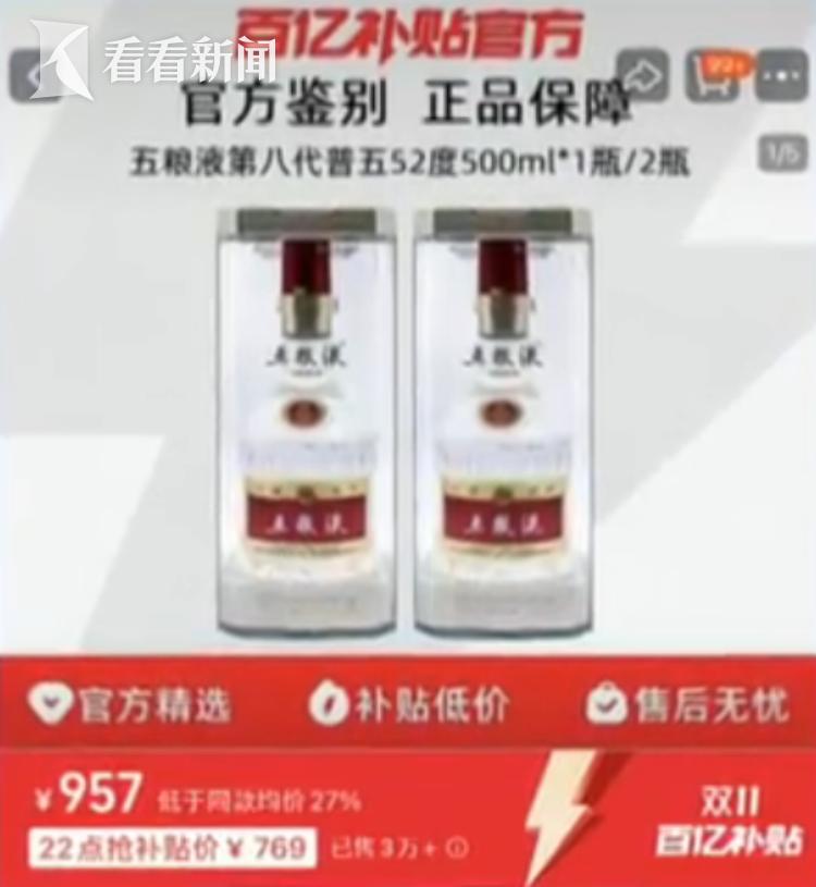 在部分電商平臺,53度飛天茅臺補貼后價格為1650元每瓶,低于市場批發(fā)價,而五糧液“普五”兩瓶裝的價格,更低于同價27%。