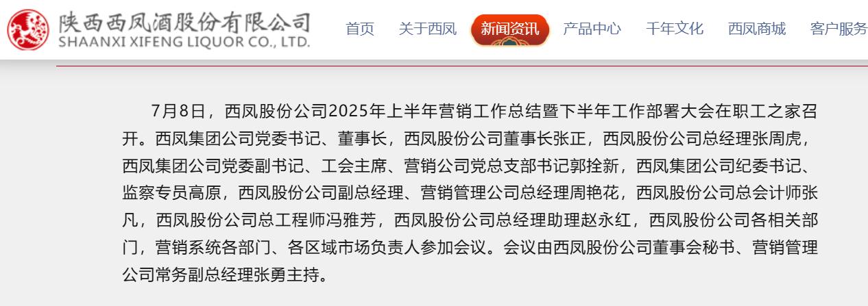 而今年7月,在西鳳酒官方報道中,張勇還是西鳳酒股份公司董事會秘書、營銷管理公司常務副總經理;彼時西鳳酒營銷管理公司總經理為周艷花。