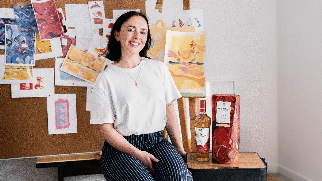 針對煥新系列第四款產(chǎn)品,麥卡倫與居住于新西蘭惠靈頓的藝術(shù)家兼插畫家邦尼·布朗展開合作。這位惠靈頓的藝術(shù)家以大膽的筆觸與明麗的色彩運(yùn)用著稱,其插畫作品廣泛出現(xiàn)在各類日常場景中——無論是雜志封面,還是牛奶盒包裝,都能見到她獨(dú)具一格的藝術(shù)表達(dá)。