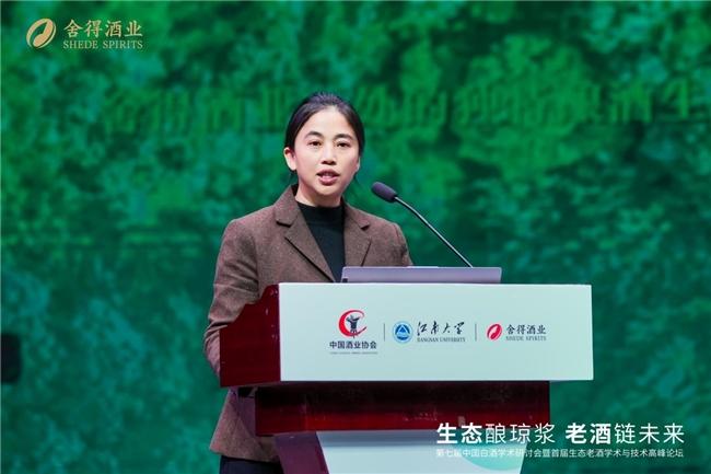 會上,舍得酒業技術研究院執行院長鄒永芳從自然驅動與生物調控的雙輪驅動,系統性闡述了舍得生態老酒形成的邏輯與科技賦能的作用。她表示,舍得酒業將進一步解析自然生態與釀酒微生態的關聯機制,推動白酒生產從傳統的經驗控制向科學精準控制轉變。