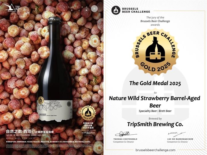 近日,在有著啤酒界奧斯卡之稱的2025年布魯塞爾啤酒挑戰賽上,來自中國貴陽的精釀品牌TripSmith憑借一款過桶野生草莓小麥啤酒勇奪金獎,讓世界品嘗到了來自貴州山野的獨特風味。 本屆大賽