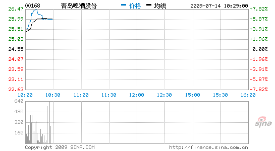 青啤昨日股價(jià)隨大市下跌3.16%至24.55元。公司通告指出,在今年上半年,青啤努力開(kāi)拓內(nèi)地市場(chǎng),推進(jìn)品牌整合和產(chǎn)品結(jié)構(gòu)的優(yōu)化及提升,同時(shí)加強(qiáng)工廠(chǎng)管理,努力降低成本等,令公司的啤酒產(chǎn)銷(xiāo)量、收入及盈利均獲得持續(xù)增長(zhǎng),因此預(yù)料今年上半年的純利可按年有60%至70%升幅。公司去年上半年純利為3.81億元人民幣,每股盈利為0.2913元人民幣。青啤前股東英博公司為套現(xiàn)還債,在今年1月份向日本朝日啤酒,出售所持19.9%青啤股權(quán),一度有指此舉令青啤酒大股東青啤集團(tuán)的控股地位受到威脅。及至5月份,英博再將余下7.07%青啤股權(quán)轉(zhuǎn)讓予內(nèi)地商人陳發(fā)樹(shù)。