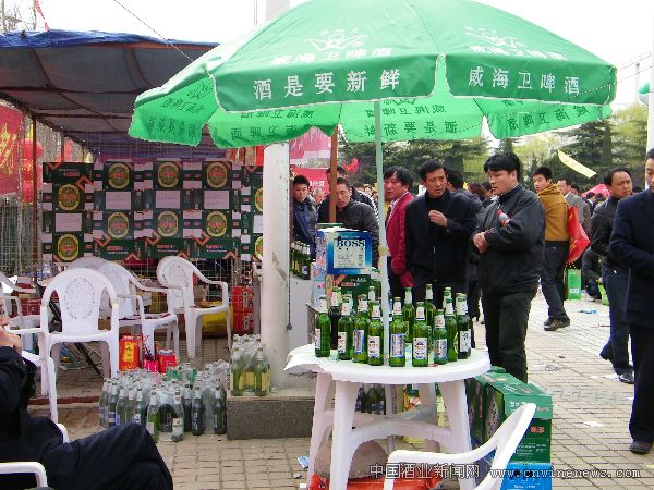 在本次山東省春季糖酒會上,山東威海衛酒業集團有限公司改變了過去啤酒、白酒、葡萄酒同臺展出的割據,將展覽重點放在了啤酒方面,在威海衛酒業展位前布滿了該企業所有的啤酒系列產品,并大力宣傳“酒是要新鮮”的消費理念。