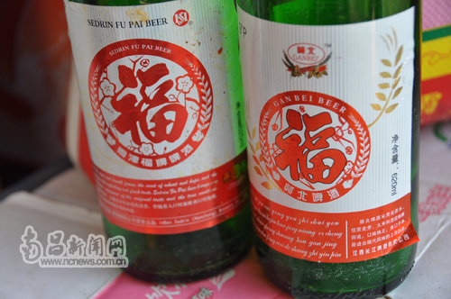 11月24日下午,記者隨即對(duì)王先生反映的情況進(jìn)行了調(diào)查。在新建縣樂(lè)化鎮(zhèn)的江橋、樂(lè)化兩地,記者在許多家超市內(nèi)看到,這里賣(mài)的“福牌”啤酒標(biāo)簽上的“福”,與雪津福牌啤酒的“福”字字體幾乎一模一樣,若不仔細(xì)辨別很難分得清。由于生產(chǎn)廠(chǎng)家的字體印刷非常小,標(biāo)簽上的廠(chǎng)家也需認(rèn)真查找,且很模糊。經(jīng)仔細(xì)辨認(rèn),生產(chǎn)廠(chǎng)家是“江西長(zhǎng)江啤酒有限公司”,和“鄱陽(yáng)縣福陽(yáng)啤酒有限公司”
