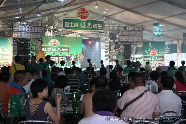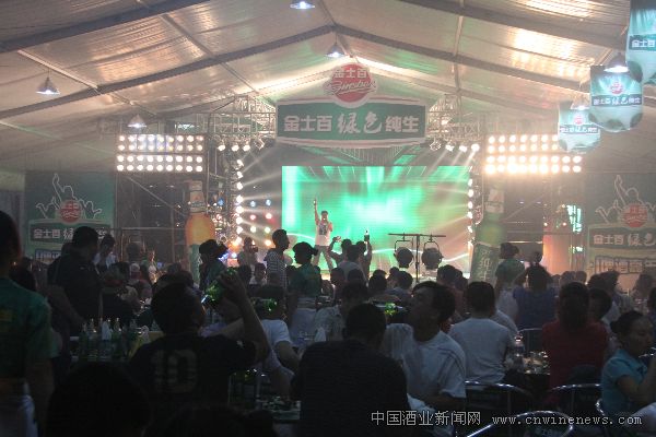 金士百啤酒股份有限公司品牌總監王明東向記者介紹,金士百以社會責任為基點,在中國啤酒行業率先倡導并實踐“綠色釀造”的理念,應用GMP標準控制生產過程,以純生化管理和清潔生產為核心,采用先進釀造設備,應用綠色釀造工藝技術為消費者提供符合國家綠色食品標準、更安全、更優質、更營養的綠色純生啤酒。金士百公司在本屆啤酒節上大規模、大手筆投入,啤酒大篷的LOGO、吊旗、圍檔、舞臺背景等全部為綠色,主要目的在于向參節賓朋展現金士百獨具特色的綠色品牌形象,讓更多的消費者了解金士百、喜愛金士百。
