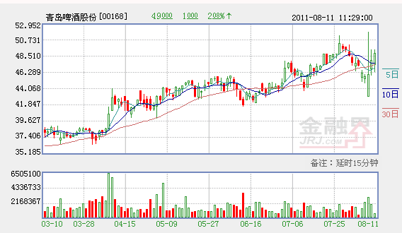 另一方面,青啤在今年首季已上調高檔啤酒價格,純生、小瓶及易拉罐裝等產品提價4%至5%。第2 季,青啤又宣布提高中檔啤酒的價格,其中年銷售量達200 萬噸的青島經典大瓶提價5%。受到局部地區大麥種植面積減少,國際大麥價格持續上漲,相信下半年青啤仍有可能進一步提價,如股價回落至45 元附近可予吸納。