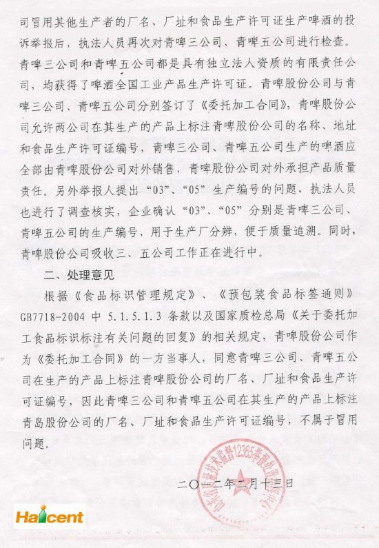 首頁酒業資訊啤酒 啤酒 質監局:青啤三公司和五公司產品不屬于冒用 2012-04-23 中國國際啤酒網 2012-04-23 11:06 啤酒 質監局:青啤三公司和五公司產品不屬于冒用 2012-04-23 質監局:青啤三公司和五公司產品不屬于冒用 2012-04-23 上一篇河北鑫泉啤酒涉嫌無證生產 2012-04-23河北鑫泉啤酒涉嫌無證生產 2012-04-23 編者按:近年來,食品安全成為我國人民越來越關注的話題,食品安全 上一篇華潤雪花啤酒總經理王群簡歷 2012-04-23華潤雪花啤酒總經理王群簡歷 2012-04-23 王群先生現年55歲,于2010年11月獲委任為華潤創業有限公司(以下 相關文章 銀子彈啤酒102歲前董事長去世 青啤換帥!黃克興接任董事長 成長著的國產啤酒 安貝夫啤酒2018財年第一財季凈利25.98億 青島啤酒:去年凈利同比增21% 華潤啤酒:2017年溢利增86.8%至11.75億元 燕京啤酒衡陽公司發布調價公告 青島啤酒總裁黃克興考察平原公司搬遷擴建項目 瑞信升潤啤(00291.HK)目標價至34.5元 日本四大啤酒公司3月將漲價