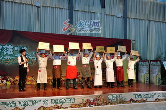 參賽選手亮相 近日,雪花啤酒冬季美食節(jié)-舌尖上的煙臺(tái)之廚王爭(zhēng)霸賽在幸福綠洲生態(tài)美食廣場(chǎng)火熱開(kāi)賽。據(jù)悉