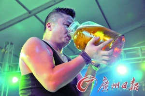 本月7日,第八屆廣東國際啤酒節(jié)在常平鐵路公園落下帷幕,10天共接待游客近15萬人次,消耗啤酒飲料超過150噸,各類競飲活動均受市民熱捧,還有一名大叔因一口氣喝下10斤青島啤酒,被封“民間酒神”而“走紅”:開幕式當晚,他參加拼酒表演,用一個玻璃缸往里灌滿酒,一口氣喝干,令一旁的酒友們“驚為天人”。