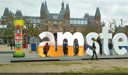 不過,在阿姆斯特丹的中國元素顯然不止畫舫,街頭偶爾看到的青島啤酒的廣告畫,和行駛在馬路上帶有龍紋圖案的青島啤酒運輸車,也能帶給我意想不到的驚喜與親切。