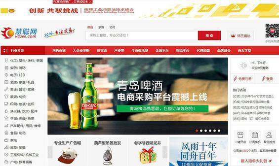 近日,青島啤酒電商采購平臺在慧聰網隆重上線。