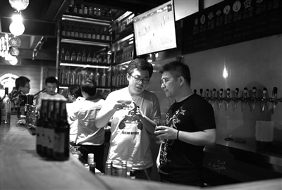 近年來,一些創(chuàng)業(yè)者開始探索精釀啤酒的國產(chǎn)化之路,潘丁浩和他的搭檔夏語林便是其中的代表。北新橋簋街西南口,店門口懸掛著圓滾滾的熊貓頭像和“熊貓精釀”四個大字。如今,他們共同創(chuàng)立的“熊貓精釀”品牌,在京城已小有名氣。