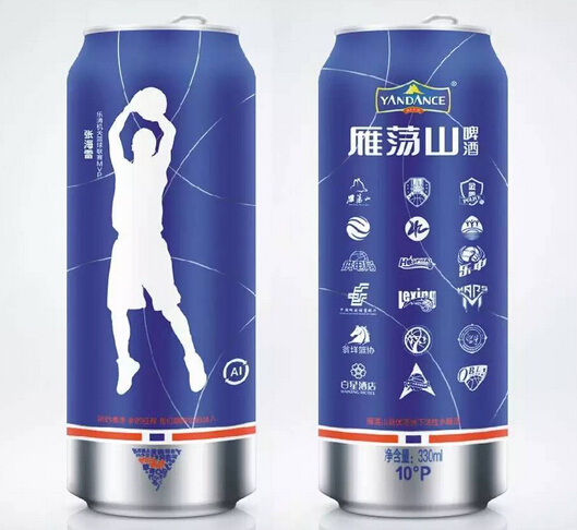 外包裝箱和罐體上都精心設計,獨特的印有機關籃球聯賽各個球隊的LOGO,罐體上的人物剪影,是樂清上賽季的MVP球員張海雷,通過拍攝和設計出更加富有活力和時尚感,這是雁蕩山啤酒和機關聯賽各球隊與球員之間的一次完美配合,是共同合作精心打造的產品。
