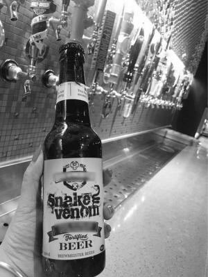 該酒吧的老板吳女士是個骨灰級別的“玩啤者”,對世界上各種知名啤酒都如數家珍。她說,這款啤酒有個很酷的名字———“蛇毒”,由蘇格蘭酒廠Brewmeister釀造,其酒精濃度67.5度,目前應該算得上啤酒酒精度世界最高紀錄。