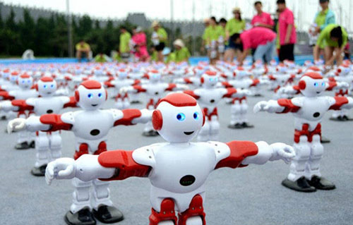 “控制一臺機器人的技術早已實現,可同步控制多臺機器人就沒那么簡單了,多臺智能機器人同步控制一直是個技術難題。”參加表演的智能機器人研發企業青島高新機器人技術有限公司相關負責人說,目前我國的智能機器人同步控制技術已經走在了世界前列,他們公司通過優化控制技術,在沒有干擾的情況下,實現了無上限同步控制。只要給機器人輸入統一的程序,告訴機器人哪一段音樂應該做哪些動作。機器人讀取到統一的指令后,就能跳出整齊劃一的舞蹈。