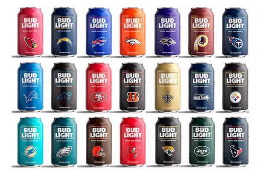 在 2016-2017 NFL 賽季開局前一周,百威淡啤又帶著限量版球隊罐包裝出場了。今年的設計,是百威淡啤與 32 支參賽隊伍中的 27 支簽約后敲定的——由于公羊隊( Rams)今年申請搬回洛杉磯已被批準,百威正與它就簽訂新合同事宜談判,取得成功后,將很快推出第 28 支球隊罐。