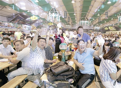 獨樂樂不如眾樂樂,為了打造千人狂歡的激情氛圍,青島啤酒大篷面積擴展到5000平方米,可同時容納近3000人。現場采用的一流燈光音響設備,邀請俄羅斯專業DJ、國內知名演藝團隊,每天上演精彩紛呈的舞臺演出。在動感的音樂和互動的氛圍下,酒客們頻頻舉杯,隨著節奏盡情搖擺。“氣氛真是太嗨了,來這兒就要釋放所有激情!”