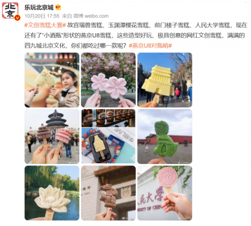 10月15日,由北京市文化和旅游局主辦的2021“北京禮物”旅游商品及文創產品大賽中,燕京U8型哈根達斯冰淇淋榮登“品牌跨界聯名”主題子榜單。