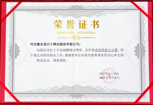 近日來,受到連續強降雨和洪水過境影響,保定全市22個縣(市、區)遭受洪澇災害,受災人口超過110萬。風雨見真情,危難顯擔當。面對災情,衡水老白干積極履行社會責任,多次為災區捐贈