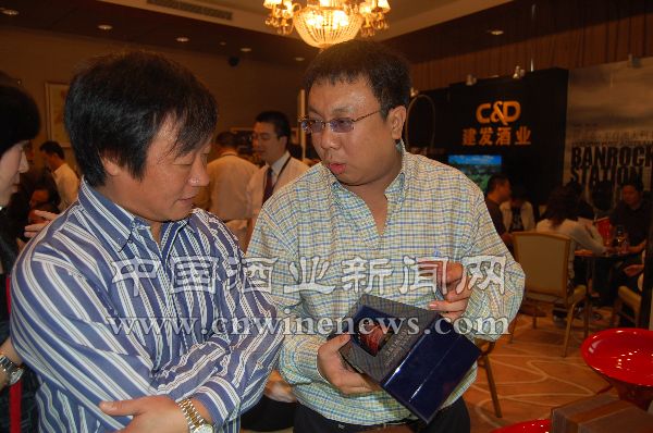 糖酒會期間,西北農林科技大學副校長、葡萄酒學院名譽院長、著名葡萄與葡萄酒專家李華赴長華夏酒報:郵發代號23-189 當地郵局可訂閱沙考察我國葡萄酒市場現狀。圖為上海建發實業有限公司副總經理劉震向李華介紹公司產品。